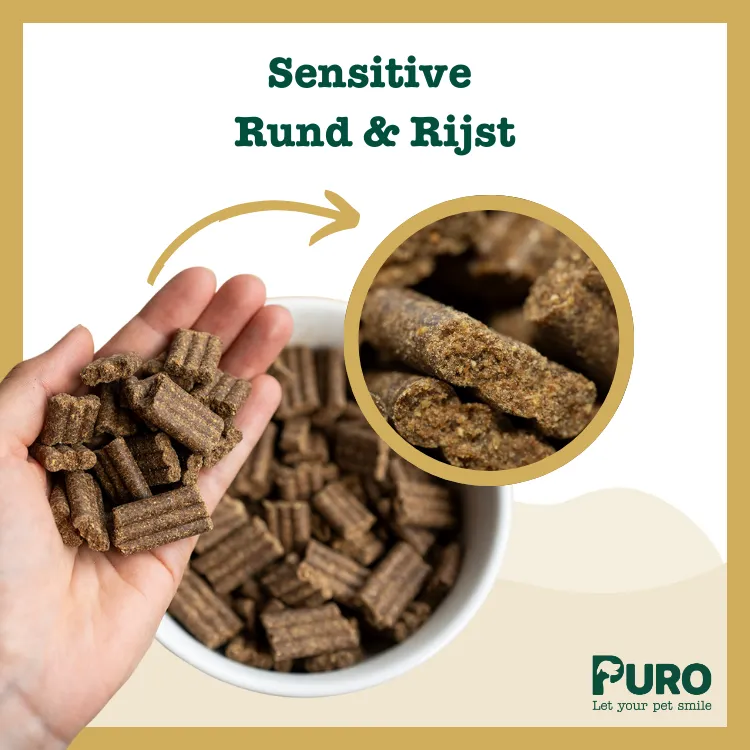 Rund(32% totaal), ontsloten rijst, ontsloten maïs, runderkanenmeel, ontsloten haver, rundervet, rundermeel, johannesbrood, kokosvet, runderhemoglobine, maltodextrine, bananen, wortel, monocalciumfosfaat, glucosamine, chondroïtine.