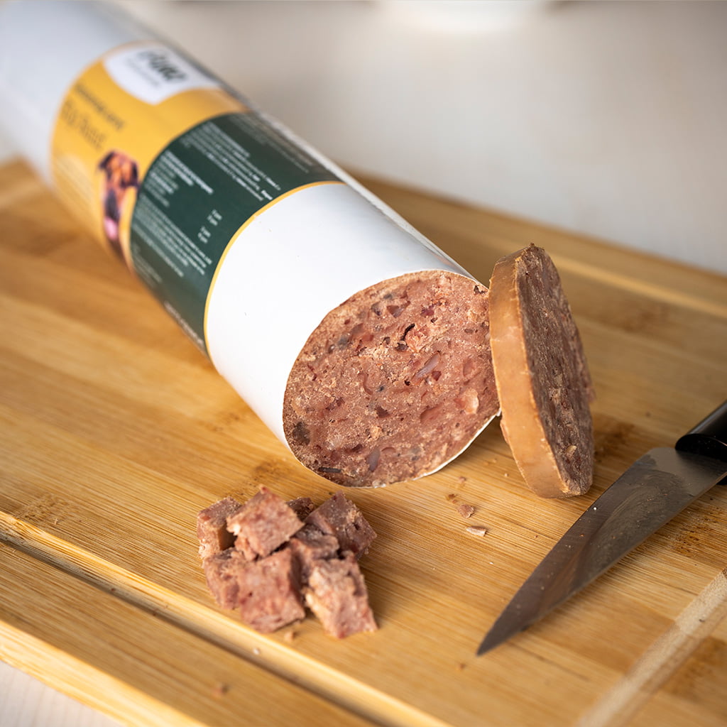 Wij adviseren u de gestoomde worst gecombineerd met brokken te voeren, zodat uw hond van alle voedingsstoffen genoeg binnen krijgt. Voer de worst op kamertemperatuur en in kleine stukjes gesneden. Zorg daarnaast altijd voor vers drinkwater en houd toezicht als de hond eet. Dit voedingsadvies is slechts een richtlijn. De voedingsbehoefte is afhankelijk van de leeftijd, grootte en mate van activiteit van de hond.